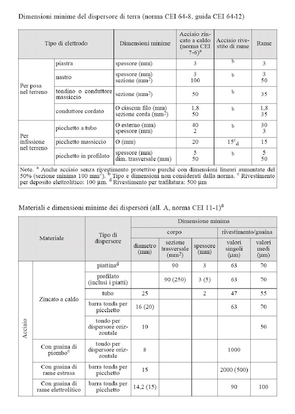 Utilizzando le relazioni suggerite dall’analisi elettromatematica del comportamento per conduttori interrati, si determina il valore della resistenza offerta dai vari tipi di dispersori disponibili.