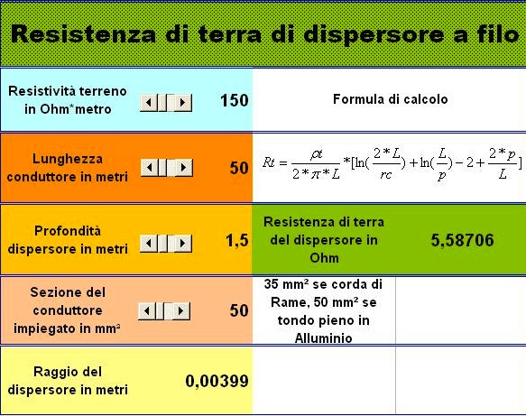 Nel caso del dispersore a filo attribuendo le dimensioni e la profondità si determina il valore della resistenza.