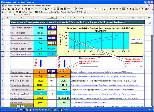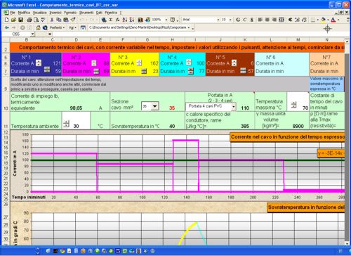 Il programma consente di trovare la sezione ottimale dal punto di vista termico, per un utenza soggetta a carico variabile, tutti gli elementi di ingresso possono venir modificati con i relativi pulsanti di comando.