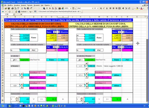 Il programma utilizzando i due criteri, consente di definire la sezione ottimale del cavo, i dati di ingresso possono essere modificati a piacere impiegando i pulasnti di comando.