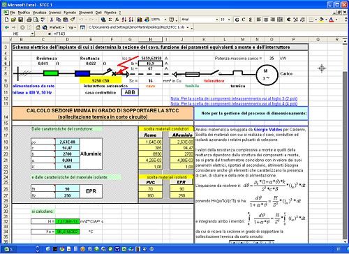 Questo programma sfrutta l'integrale di Joule per trovare il valore della sezione del cavo, quando risulta protetto da oppotuno interruttore, inoltre consente di trovare, come processo inverso, il tempo massimo di intervento dell'interruttore protettore quando si conosca la sezione del cavo