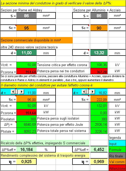 Il processo di dimensionamento impiegato è quello alla perdita di potenza ammissibile, la sezione che realizza la condizione viene indicata come minima, il programma calcola tutte le perdite del sistema, perdite per effetto joule, perdite di potenza negli isolatori della linea e perdite per effetto corona; l’operatore giocando sui dati di ingresso cercherà di ridurre od eliminare le perdite per effetto corona, se ciò non risulta possibile si deve aumentare il diametro dei conduttori, modificare i materiali utilizzati per il trasporto, frazionare i conduttori in due o più parti per ogni fase.