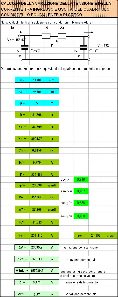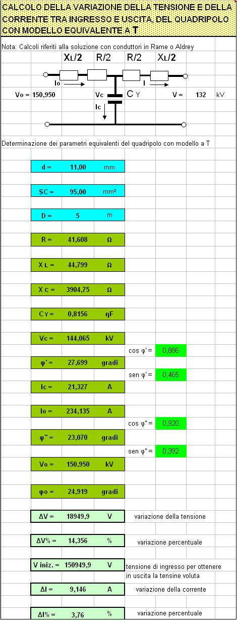 Dagli elementi utilizzati nel processo di dimensionamento si ricavano i valori di resistenza, reattanza e capacità. Partendo dagli elementi di uscita del quadripolo, a seconda del modello considerato, si risale ai valori di ingresso, mediante analisi vettoriale.