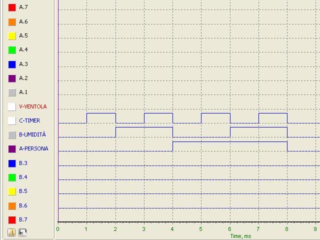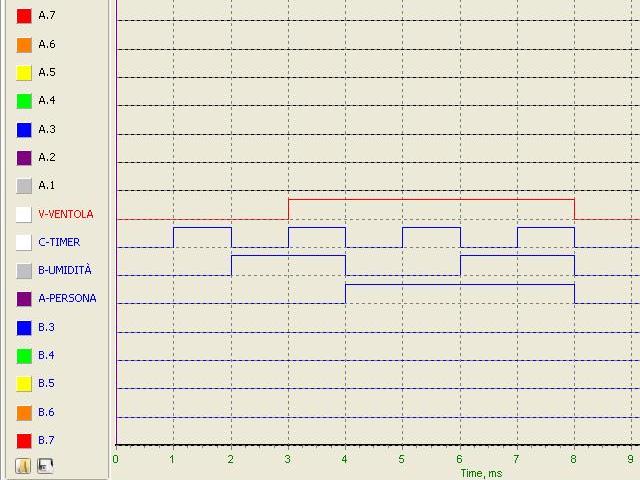 Per comodità possiamo ridenominare gli anonimi B0,1 e 2 in base alle nostre esigenze dove, ricordiamo, i tre ingressi erano A (presenza di una persona), B (sensore umidità) e C (timer). Invece l'uscita, dove abbiamo posto il cavetto A0, rappresenta la Ventola: