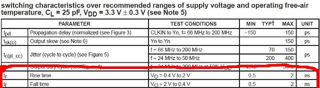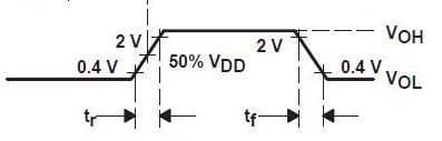 - 1 - il salto da 0 a 5 V e viceversa da 5 a 0 non potrà essere istantaneo, ma impiegherà almeno qualche frazione di nano secondo anche nei migliori generatori di clock; questa caratteristica viene specificata come tempo di salita e tempo di discesa, spesso citate nei datasheet con tr e tf e riferite a determinate soglie di tensione come nel seguente esempio di un generico generatore di clock a 3 V: