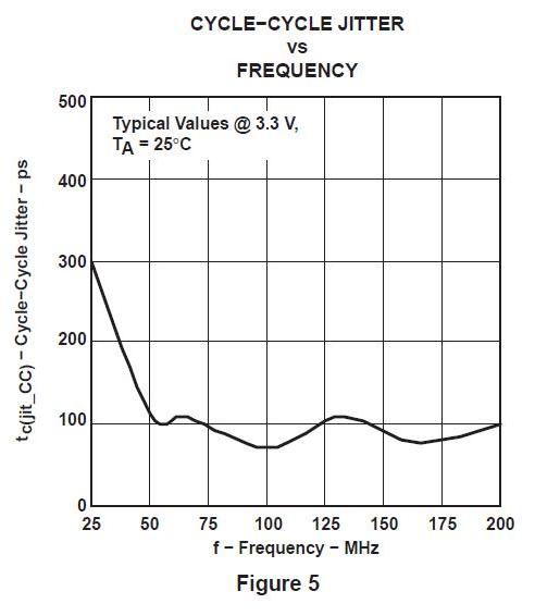 E qui la variazione del Jitter in base alla frequenza di emissione del clock: