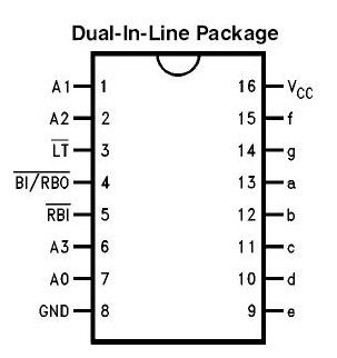 Per quanto riguarda gli altri tre input denominati LT, BI e RBI, servono per scopi particolari che qui non ci interessano e possiamo tenerli High come specificato nella Truth Table del data sheet.