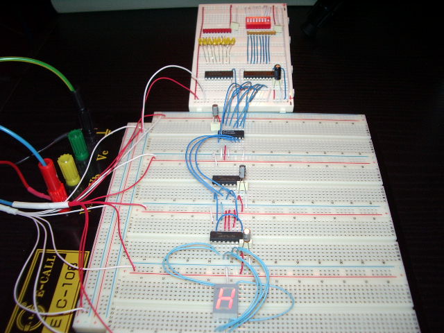 Quindi col 74LS48 abbiamo risolto il problema di gestire il display. Ora basterà, in qualche modo, fornire a questo integrato, un 3, un 4 o un 7 in binario, per far illuminare rispettivamente la E, la H o la L sul display montato al contrario.