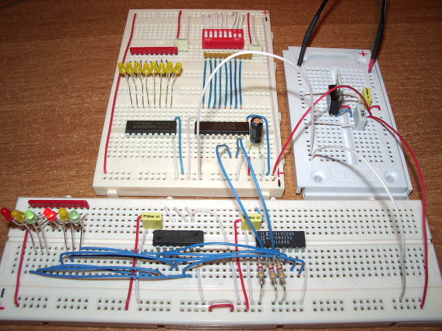 I componenti necessari per l'esperimento sono elencati in Appendice A e per quanto riguarda l'alimentazione ricordo che è necessaria una tensione di 5 V abbastanza precisa (non inferiore a 4,75 V e non superiore a 5,25 V). L'ideale è naturalmente un alimentatore da banco, se lo si possiede, ma va benissimo l'alimentatore di un PC (presentato in Elettronica Digitale Pratica - I) o, ancora, molto semplicemente un alimentatore universale opportunamente stabilizzato come mostrato in Appendice B.