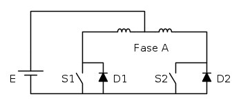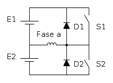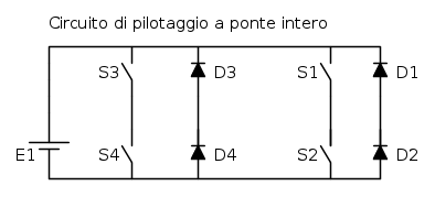 - Recupero: prendendo come riferimento il circuito di alimentazione a ponte intero. La tecnica consiste nell'inversione della corrente tramite il controllo dei transistor (schematizzati come interruttori e diodi).