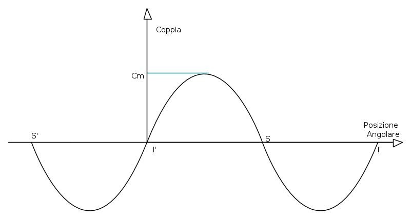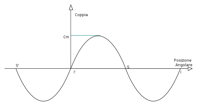 Prendiamo come esempio un motore in posizione di equilibrio stabile, posizione caratterizzata dall'avere coppia nulla. Se al rotore facciamo compiere una rotazione deltaalfa, il motore risponderà con una coppia statica che porterà il motore di nuovo alla posizione di equilibrio (tale coppia viene anche chiamata coppia di tenuta).