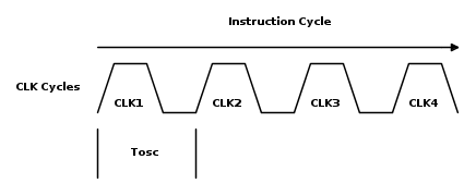 Ogni istruzione, a seconda dell'architettura, necessita di un tempo minimo per essere eseguita, ed un altro dettaglio a cui è bene tener conto è il tempo che il dispositivo impiega ad eseguirla. Nei PIC per esempio, una istruzione può impiegare da 4 a 8 cicli di clock per essere eseguita, ovvero 1 o 2 cicli di istruzione. Un diagramma temporale d'esempio per un ciclo di istruzione è il seguente