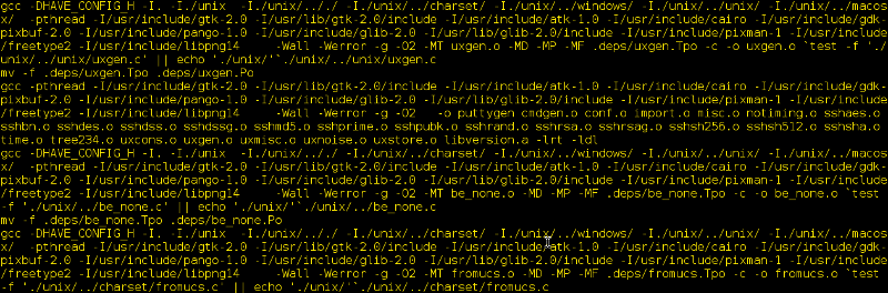 tar -xvf putty-0.63.tar.gz ... putty-0.63/unix/uxprint.c putty-0.63/unix/uxpty.c putty-0.63/unix/missing putty-0.63/unix/uxstore.c putty-0.63/unix/xpmptcfg.c putty-0.63/unix/install-sh putty-0.63/unix/xpmpucfg.c putty-0.63/unix/aclocal.m4 putty-0.63/unix/uxnet.c putty-0.63/unix/configure putty-0.63/unix/gtkcols.h putty-0.63/unix/Makefile.am putty-0.63/unix/gtkfont.c putty-0.63/unix/ux_x11.c putty-0.63/unix/gtkfont.h putty-0.63/unix/uxproxy.c putty-0.63/unix/gtkcfg.c putty-0.63/unix/uxmisc.c putty-0.63/unix/xpmputty.c ... cd putty-0.63/