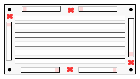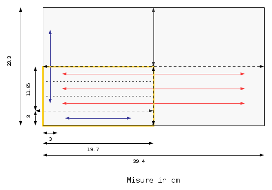 Da questo è stato facile dedurre che potevo mettere 2 ballast su ogni lato largo (39.4 cm) ed 1 per lato più stretto (29.3 cm).
