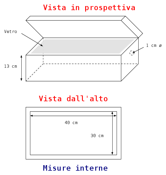 - Mi serviva una cassa di legno in cui mettere i tubi ed i ballast. 40 x 30 cm andava benissimo.