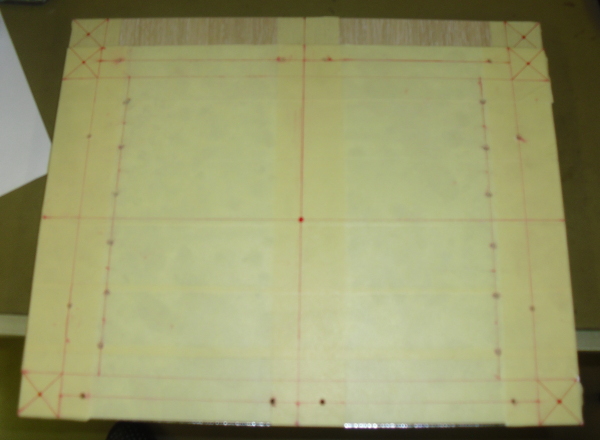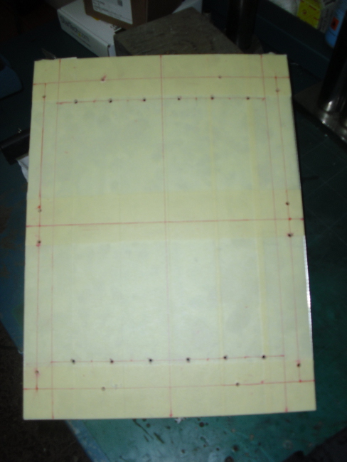 Ho tolto la protezione della base (che era di plastico liscio) e l'ho sostituita con del nastro di carta, quello ruvido di colore giallino. Una superficie troppo liscia su cui tracciare le misure, avrebbe portato a fare solo casini, sporcando da tutte le parti, confondendo poi le misure etc. Con una superficie ruvida questo non succede. Il nastro usato comunque assorbe un pochino l'inchiostro della penna. Pazienza, una passata di alchol alla fine e tutto sarebbe stato OK.