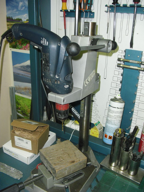 Mentre per fare i fori ho usato un trapano con un supporto apposito: