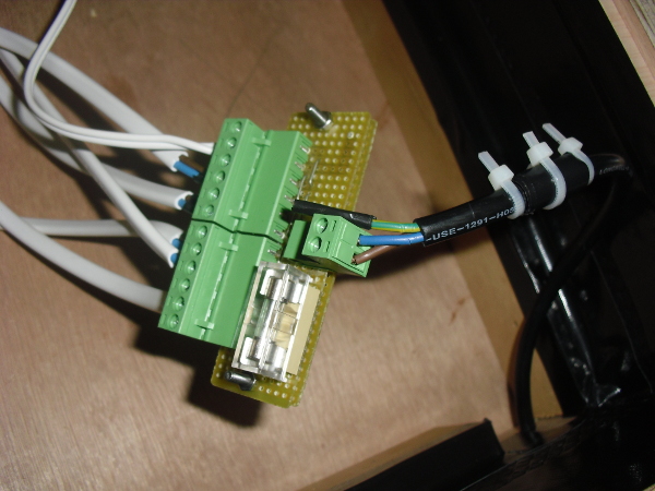 Il vantaggio (forse) di montare il connettore su una basetta millefori, è che un domani, per allacciare il circuito del timer, modificando facilmente le saldature potrò collegare i fili per l'alimentatore, che molto probabilmente sarà un convertitore AC/DC SMPS da parete con uscita ≈ 5V opportunamente modificato, e bypassare l'alimentazione della base interna attraverso un relè comandato dal timer..