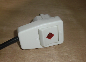Mancava l'interruttore esterno. Purtroppo non ho trovato interruttori tipo quelli delle lampade, con il case in cui entrasse un filo da ø 1 cm. Allora ho usato una presa con interruttore incorporato, cosi: