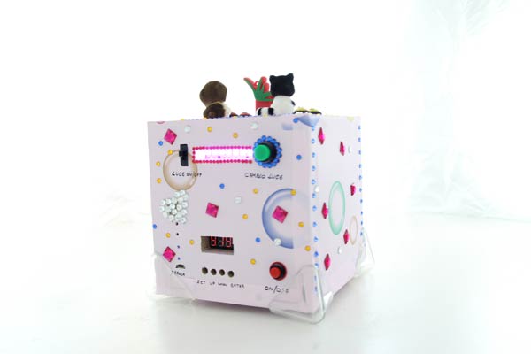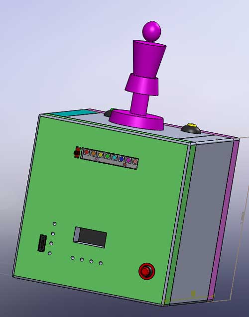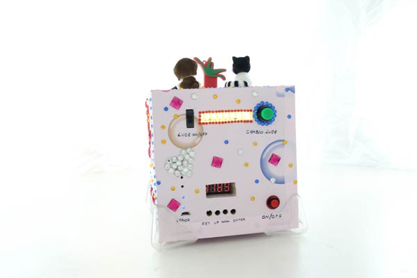 Anteprima del progetto finito - lato retro: lampada RGB, timer, indicatori batteria e interruttore generale
