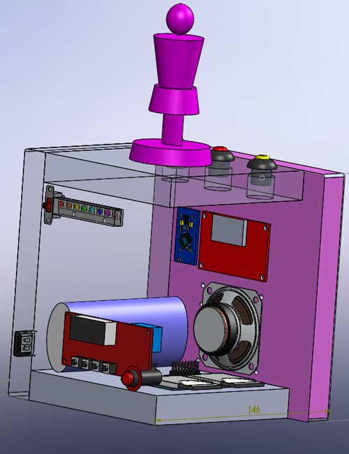 Qui vi mostro alcuni passaggi della faticosissima costruzione del tutto. A rendere difficile la realizzazione è stato soprattutto dover ricavare nel legno diversi alloggiamenti piuttosto precisi per interruttori e componenti. Devo assolutamente comprare una stampante 3D!