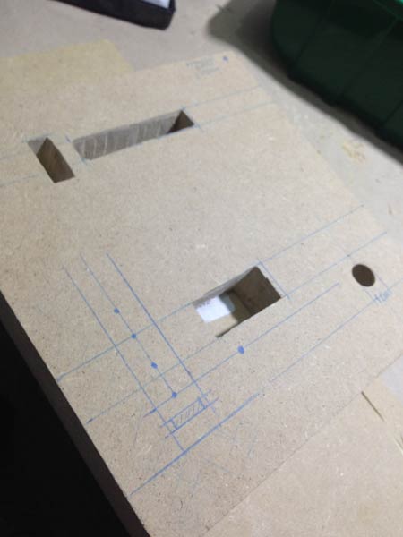 Ho scelto un legno semplice (si fa per dire) da lavorare. Soprattutto molto denso per poter ricavare i precisi alloggiamenti dei componenti: MDF da 2 cm di spessore.