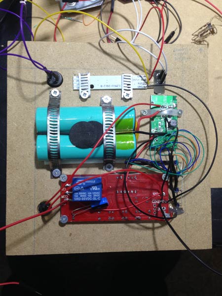 Ecco una parte dei componenti su una BreadBoard e su una tavoletta per consentirmi di spostarli e fare cose. La vera sfida era mettere tutto dentro il contenitore.
