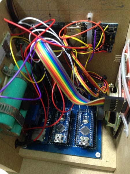 Notate che anche le schede Arduino sono state montate su connettori Dupont per aver la possibilità di sostituirle facilmente in caso di "incidente", sempre dietro l'angolo quando si tratta di me.