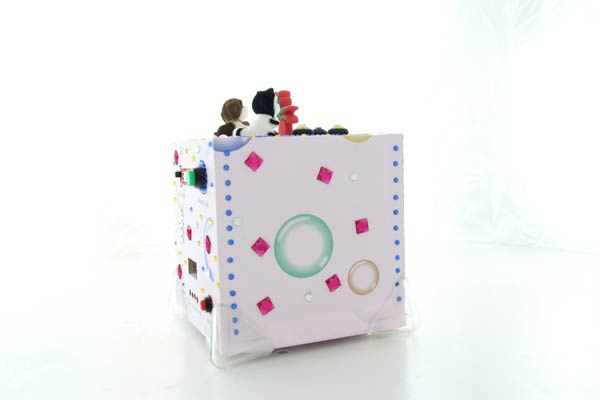 La sera lo mettono in un punto alto finché lei non si addormenta e di giorno ci gioca con la mamma. Il fatto è che per realizzare il cubo robusto è venuto bello pesante, così ho paura che se lo dia su un piede. Dunque meglio la presenza di un adulto, che non fa mai male.