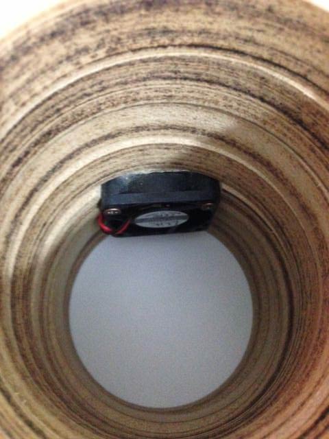 In tutti i casi, il mio foro è di 6,5 cm. Ho ricavato in 3 strati di legno un alloggiamento per una ventolina da 4 cm, che però sospetto ancora non essere troppo utile. Magari vi farò sapere in futuro.