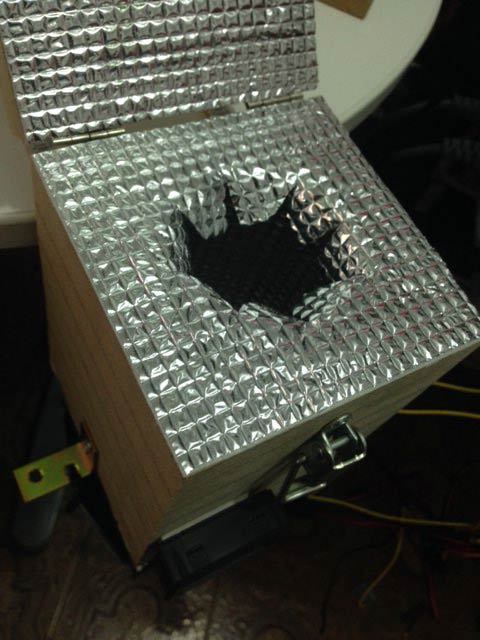 Prima di tutto rivestiamo le pareti interne con una guaina termica per i tubi acquistabile al brico. Io ho utilizzato colla calda e pazienza per fissarla alle pareti. Se evitate la ventolina interna, non vi servirà nemmeno la pazienza!