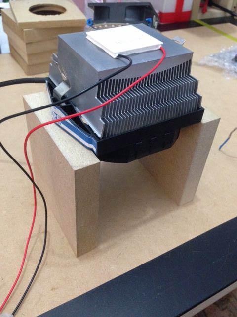 NOTA SULL'ALIMENTAZIONE: le celle di Peltier hanno bisogno di una discreta potenza per operare bene, assicuratevi di fornirla. Io ho optato per un alimentatore ATX per computer, prelevando la 12 V sia per le piastre termiche che per le ventole. Consultate il datasheet del produttore per questi dati.