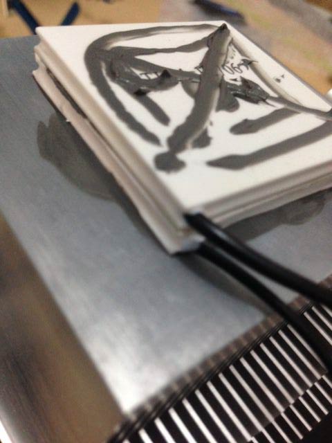 Quindi abbiamo le piastre, con della pasta termica tra loro e un dissipatore per CPU di alluminio con relativa ventola, molto semplice. Per tenere in posizione le piastre sul dissipatore e tra loro, ho utilizzato del silicone trasparente.