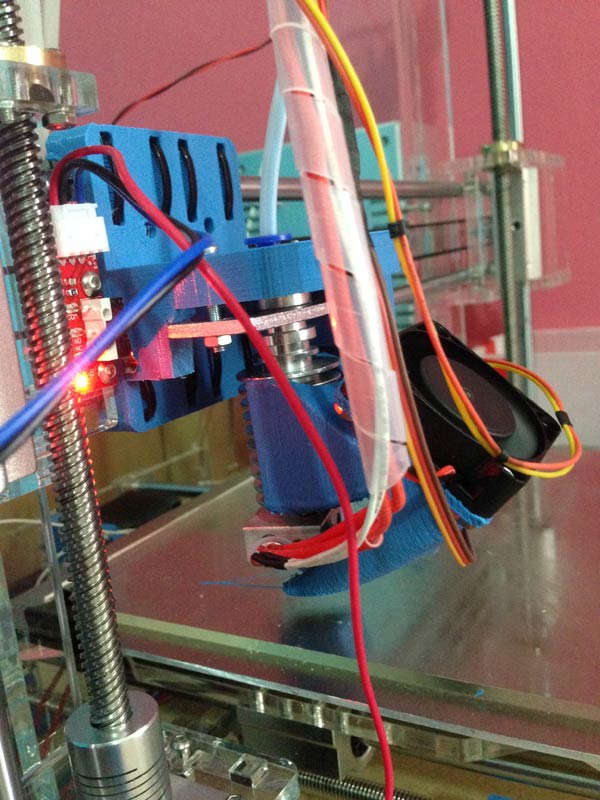 La macchina arriva con una ventolina da 40 messa proprio parallelamente al corpo estrusore, ma per avere una stampa perfetta è necessario che anche il corpo in stampa venga raffreddato in modo che gli strati appena depositati siano sufficientemente robusti per sostenere i successivi che comunque arrivano caldi.