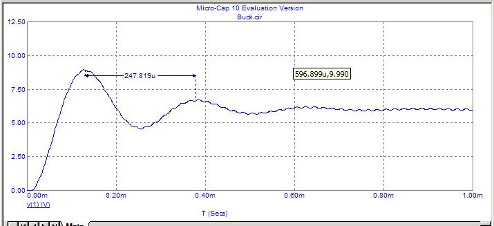 A questo punto dovrebbe essere chiaro il perché nella simulazione fatta precedentemente in questo documento (Buck con L=300uH, C=5uF e R=17 ohm) si ottiene che prima di andare in regime stazionario, è presente una oscillazione a fronte dello scalino.