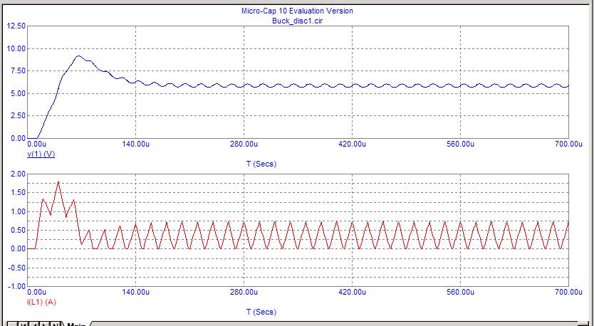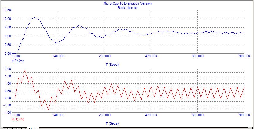 Bene, concludo qui la trattazione del BUCK converter in modo tradizionale. Faccio solo notare la “sovraelongazione” che si ha delle grandezze prima di andare in regime stazionario. Ma sarà argomento di un prossimo capitolo.