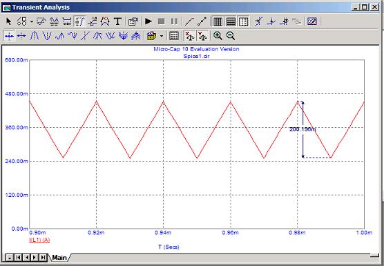 Come si vede dalla simulazione stiamo lavorando al limite tra funzionameno continuo e discontinuo sulla corrente nell’induttanza (vedi simulazione dopo che è andato a regime ... o quando sono in stato stazionario).
