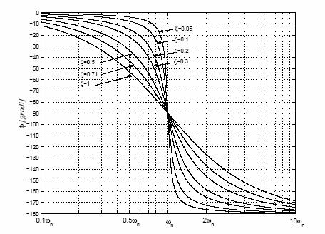 E' importante anche avere una idea di come si comporta l'andamento della FASE di un segnale in uscita ad un sistema del secondo ordine. Anche qui si potrebbe partire dall'andamento asintotico della fase e poi passare a quello reale. Comunque, il risultato importante è questo: