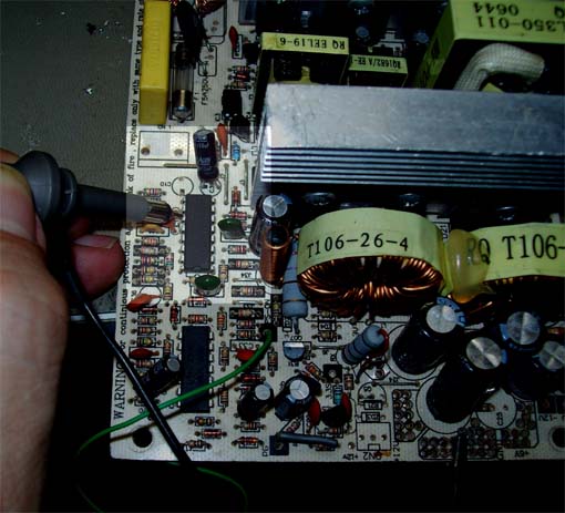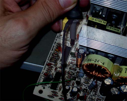 Una prima misurazione riguarda il fusibile di protezione. Questo fusibile non protegge in alcun modo i due transistor principali Q01 e Q02 connessi alla tensione raddrizzata di rete.