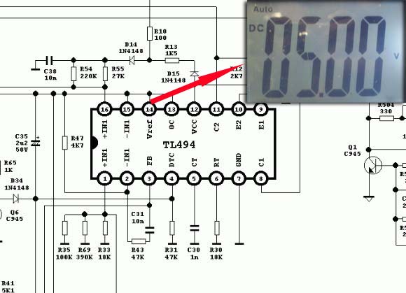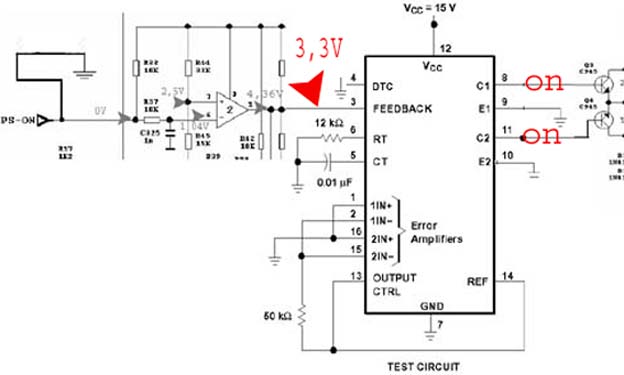 Nel caso di questo alimentatore come si vede dall'immagine sopra la Vref e' collegata al piedino 13 e al 15 vediamo a cosa servono: