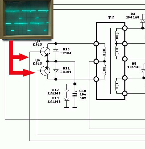 Il Power Switch riguarda i due transistor di potenza che pilotano T1 il trasformatore multitensione.