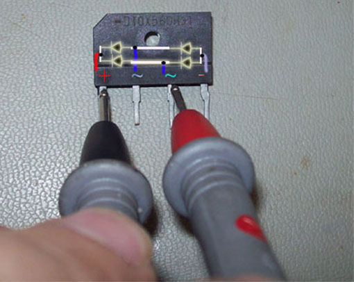 Se il fusibile e' saltato dobbiamo misurare necessariamente il ponte raddrizzatore: