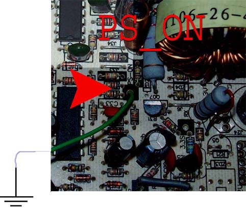 Qui un esempio pratico nel chiudere a "GND" il PS_ON