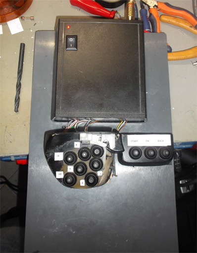 La prima simulazione e' stata quella di cablare mediante uno switch meccanico 3 rele' che potessero commutare ed invertire le posizioni dei due mini joystick. Sotto un'immagine del primo test: