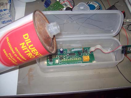 Il diluente Nitro ha un alto potere sgrassante, ed e' adatto a rimuovere il "solder" e la sporcizia sulle piazzole dei componenti.