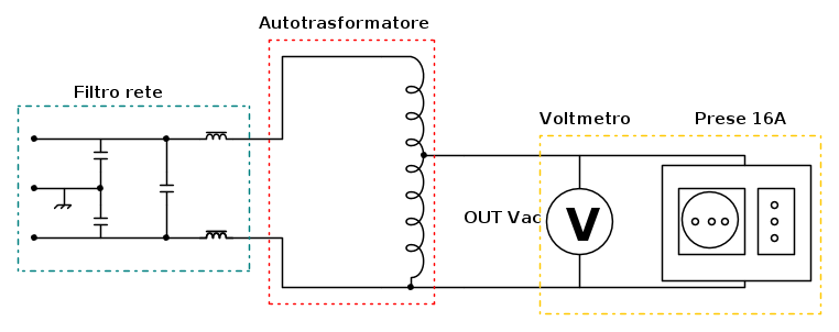 Il box conteneva un vecchio "carico resistivo variabile" molto simile al Variac. Ormai in parte danneggiato ho deciso di sfrattarlo,e utilizzare il Variac.
