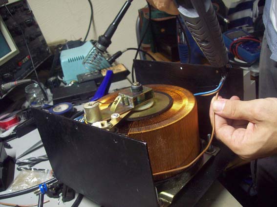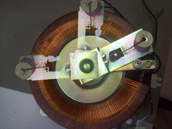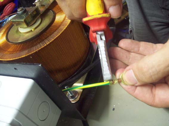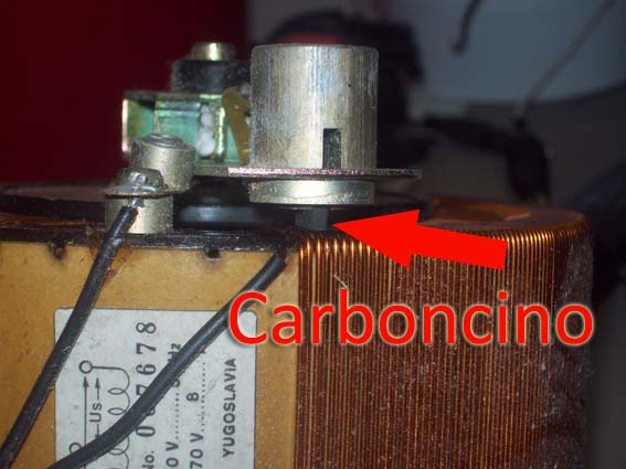 Mediante la rotazione di un alberino in cui e' innestata una spazzola di carbone,viene fatto ruotare sulla circonferenza dell'avvolgimento,dove il rame non presenta "Isolamento".