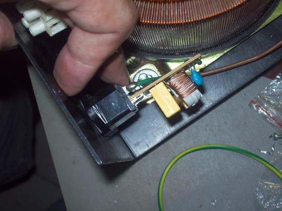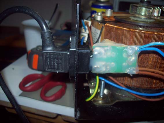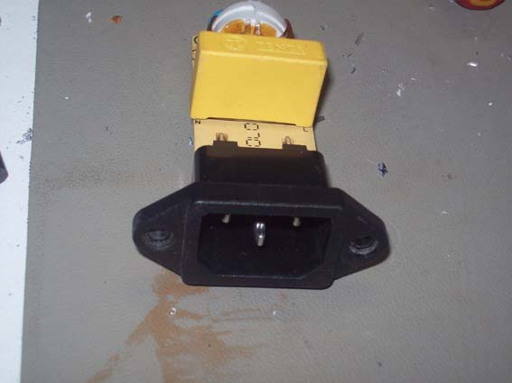 La presa e'entrata bene nell'asola,e successivamente ho usato la colla a caldo per isolare la basetta del filtro rete.