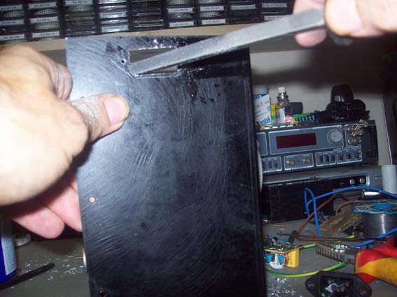 La prima cosa che ho fatto e' prendere le misure del frontale del Variac per fissarlo successivamente nel Box.