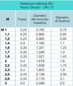 Per stabilire la corretta filettatura in base alla vite da utilizzare occorre seguire la seguente tabella: